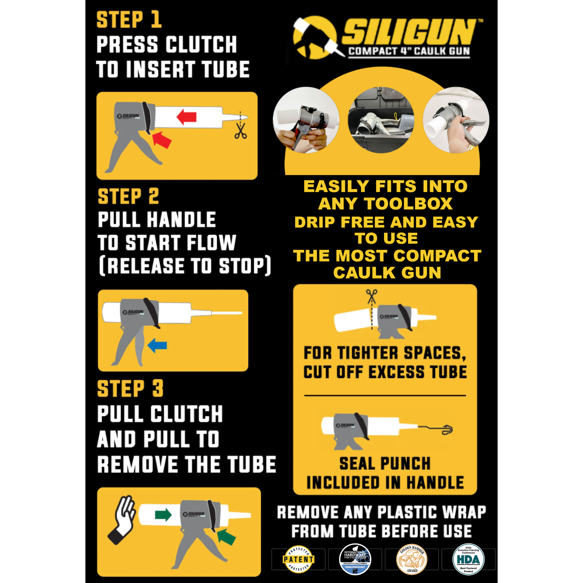 "SILIGUN" CLASSIC 4″ 黑膠 特短填縫槍 (膠槍) "SILIGUN" CLASSIC Compact 4" Caulking Gun